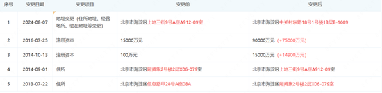 但从工商信息变更记录可知,该公司在2014年以前的注册资本仅有100万元,后来经过两次追加,才达到9亿元。