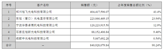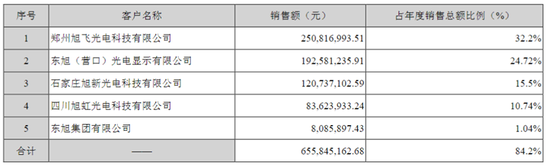 第三大客户石家庄旭新光电科技有限公司、第四大客户四川旭虹光电科技有限公司都是东旭光电子公司,第五大客户是东旭集团自己。