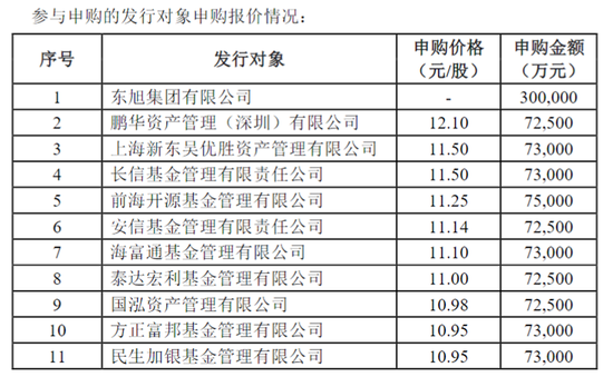 次年3月,这份定增申请还是获得证监会审核通过。而东旭集团再次“以身入局”带头认购30亿,而公募基金成为接盘主力。