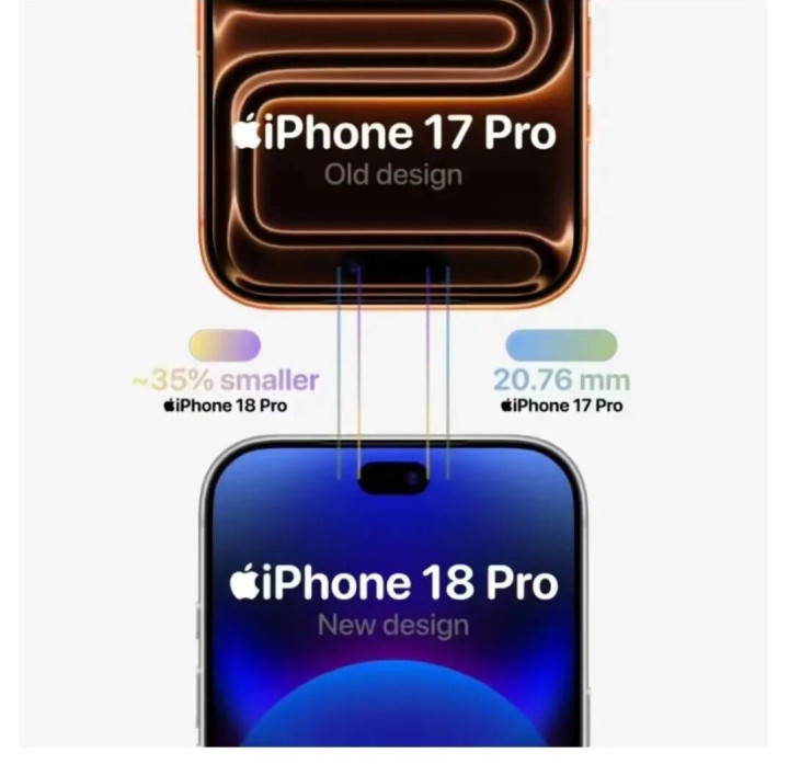 和iPhone17Pro的灵动岛相比,iPhone18ProMax的灵动岛尺寸缩小约35%。