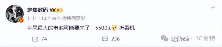 有网友发文,表示iPhone Fold的电池容量将会达到5500mAh。