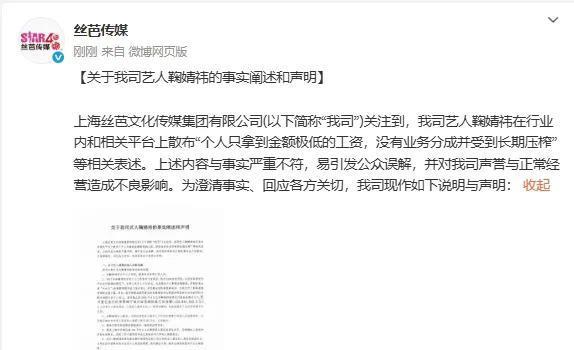 粉丝却怒了,认为是公司故意转移视线,把自己对艺人的压榨轻轻抹去,故意挑起大众对艺人高额收入的恶意,导致鞠婧祎维权困难。而再高的收益都是鞠婧祎自己工作换来的,不是公司压榨艺人的理由。