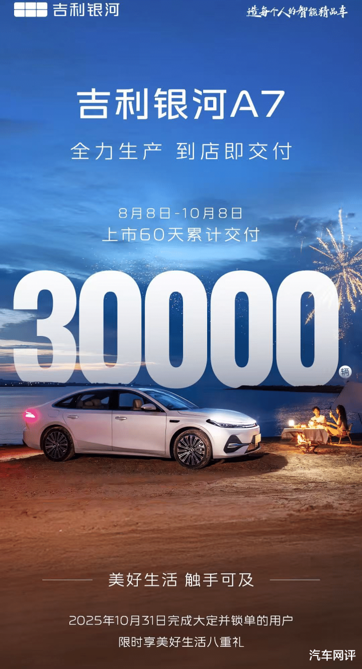 10月10日,官方数据显示吉利银河A7上市两个月交付量突破30000辆大定。这款置换补贴价仅8.18万元起的中型插电混动轿车,以超乎预期的市场热度,印证了吉利在新能源领域的最新突破。从6月的593辆到8月单月销量达12078辆,银河A7的销量曲线呈现出惊人的增长轨迹。在竞争最激烈的混动轿车市场,这款新车成功杀出一条血路。