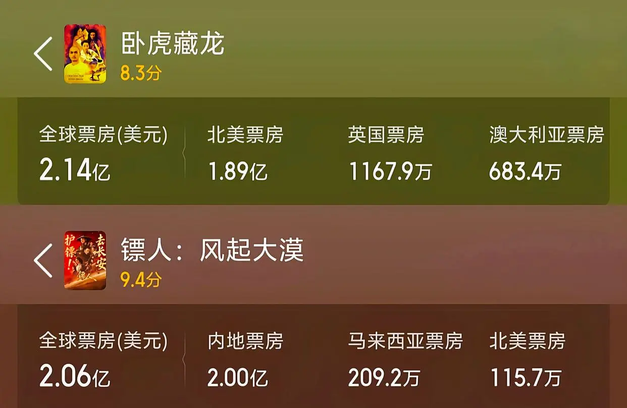 要知道票房2.14亿美元的《卧虎藏龙》可是全球武侠电影票房榜第一名,一旦《镖人》能从现在的2.06亿美元涨到2.14亿美元以上,那么《镖人》无疑就是新的“全球第一”。